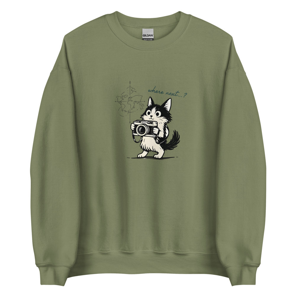 新登場の「ユニセックス スウェット」で心地よい暖かさを感じてみてはいかがでしょうか?旅をするノルウェージャンフォレストキャットがデザインされたこのスウェットは、寒い日々でも快適に過ごせるように作られています。日常使いにぴったりのアイテムとして、アクティブなライフスタイルをサポートします!