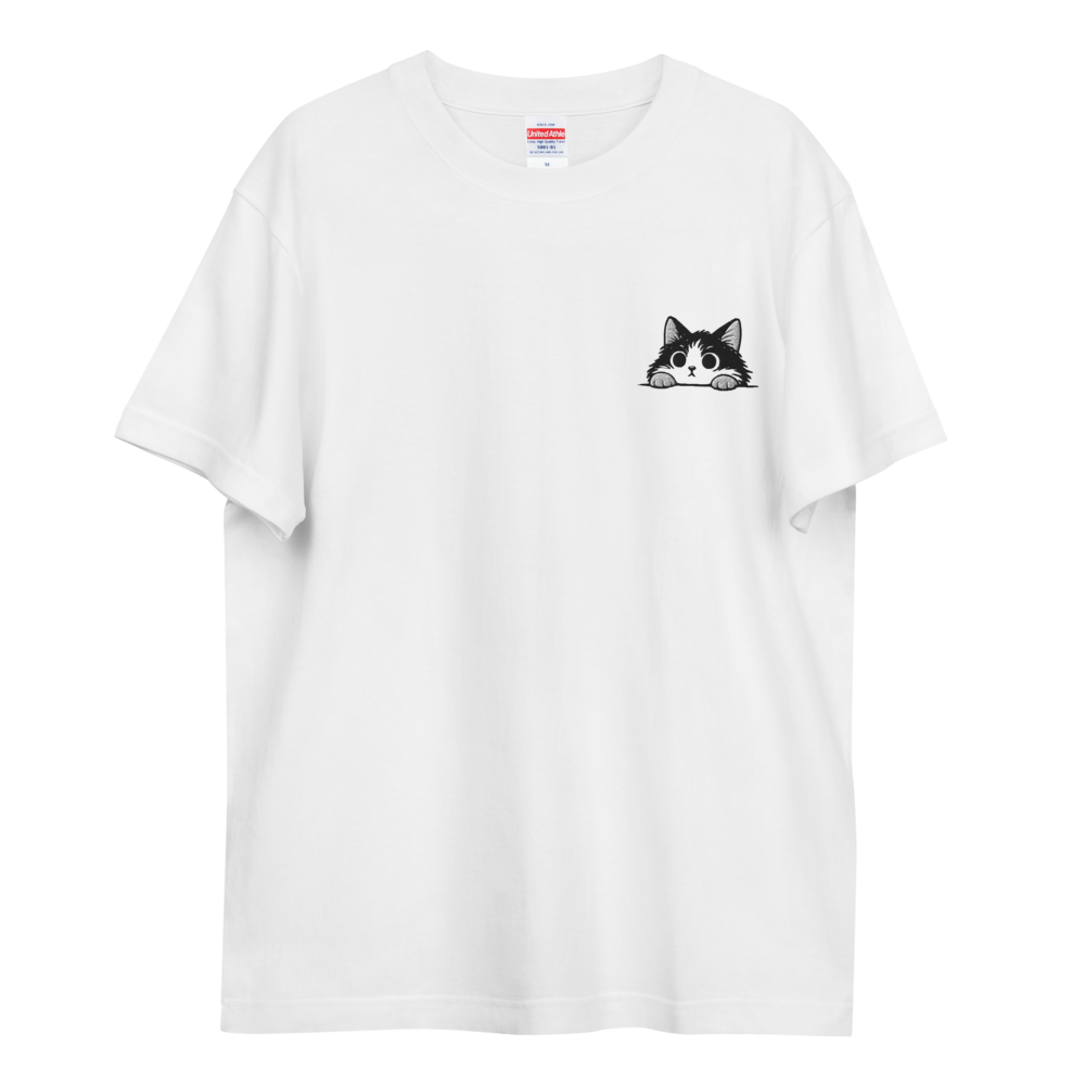 fluffeenyの猫を、シンプルな刺繍で仕上げたTシャツです。