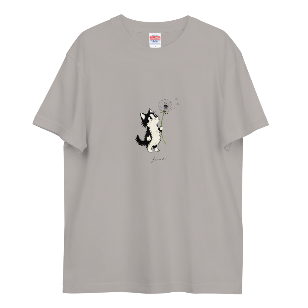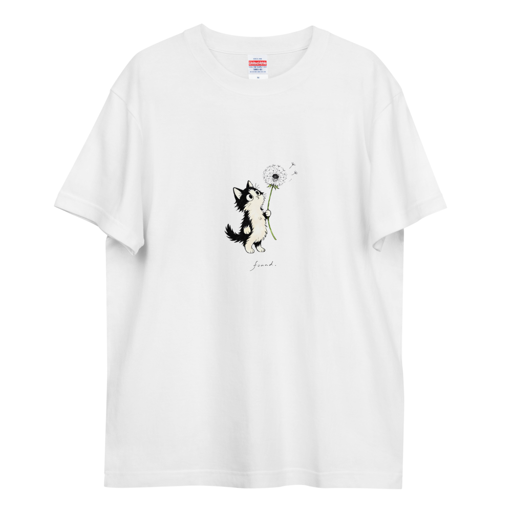 【たんぽぽと白黒猫のナチュラルデザイン】半袖Tシャツ(PF00322)(2COLOR)